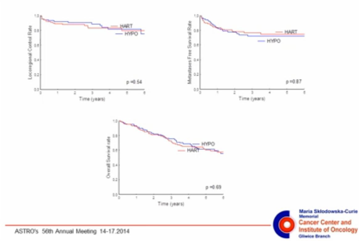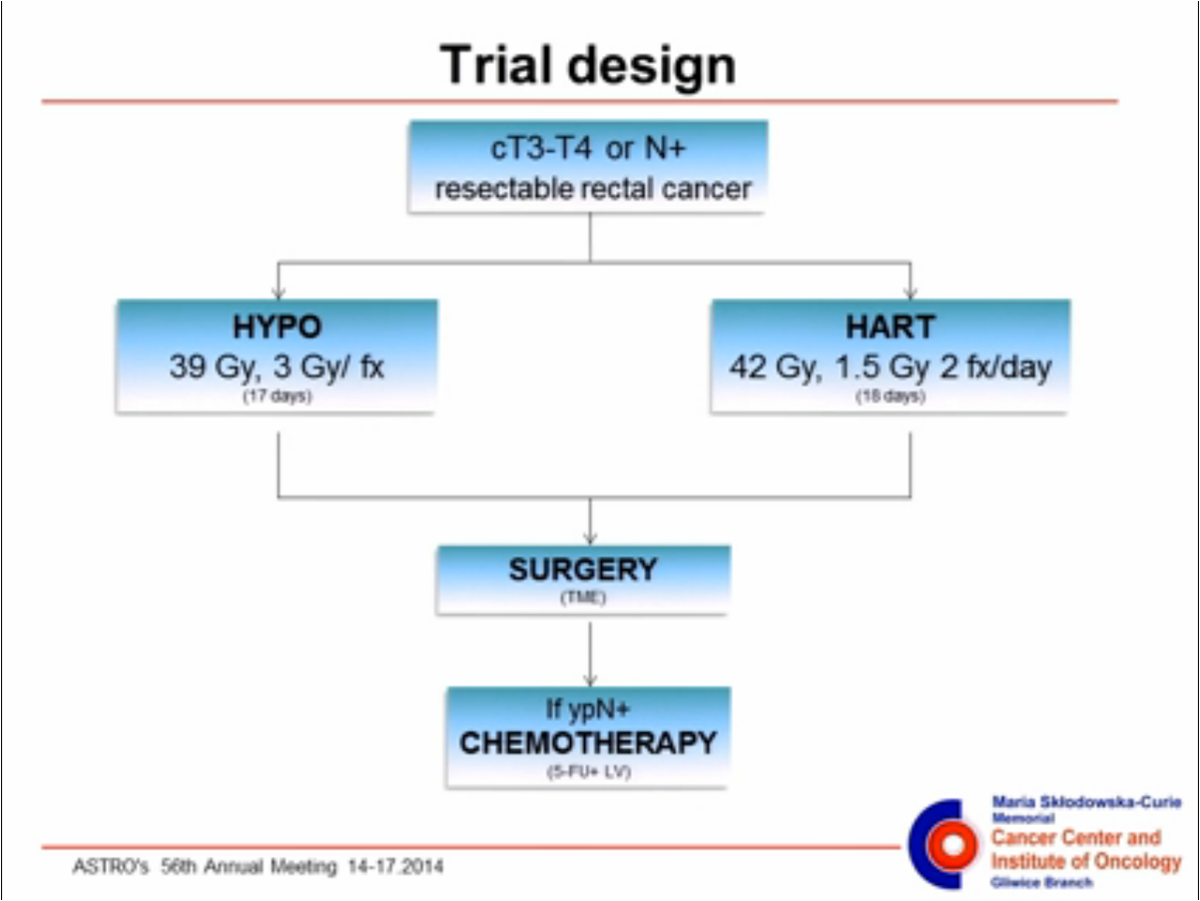 Wzietek I, Kryj M, Idasiak A, Bialas M, Chmielarz A et al. Randomized Clinical Trial on Hyperfractionated Versus Hypofractionated Preoperative Radiotherapy for Rectal Cancer: Long Term Outcomes Including Quality of Life Assessment. Int J Radiat Oncol Biol Phys. Sept 2014; Vol 90, Issue 1, Supplement, S37.
